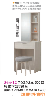 化妝椅以人體工學設計為考量,提供舒適的坐姿支撐,無論是短暫化妝還是長時間的保養工作,都能保證您的舒適需求。不僅如此,化妝椅還採用了簡約且耐用的材質,與鏡台外型設計融為一體,為居家空間增添一抹現代化的氣息。