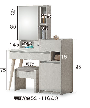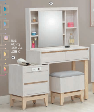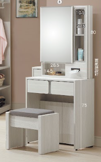 這款鏡台結合了現代化的收納空間與舒適的化妝椅設計,將整理化妝品與飾品的需求完美融合在您的日常生活中。無論是繁忙的早晨還是悠閒的夜晚,這款巧妙設計的鏡台都能幫助您輕鬆整理物品,讓化妝環節變得更有條理且便利。
